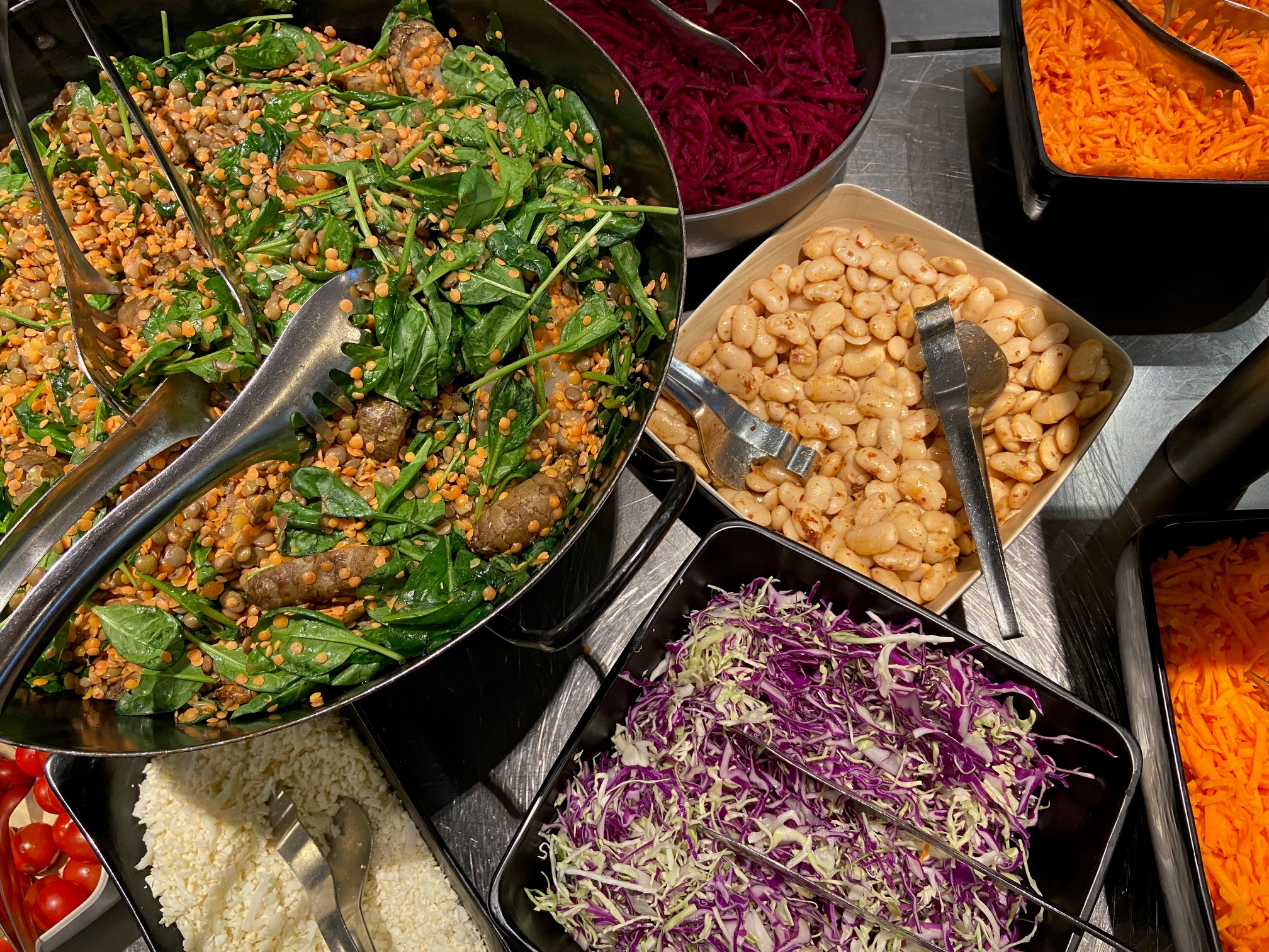 ”Vi reducerer madspild ved at portionsanrette i skåle. Det gør, at folk ikke øser for store mængder op, som ender i skraldespanden. Ved at få retten i en mindre portion undgår den enkelte medarbejder at overspise og sidde dvask på kontoret efter frokosten,” tilføjer Erik Jensen.