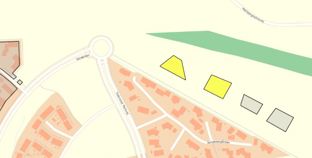 Kortet nedenfor viser med sine gule markeringer, hvor de kommende gravpladser kan blive en realitet.