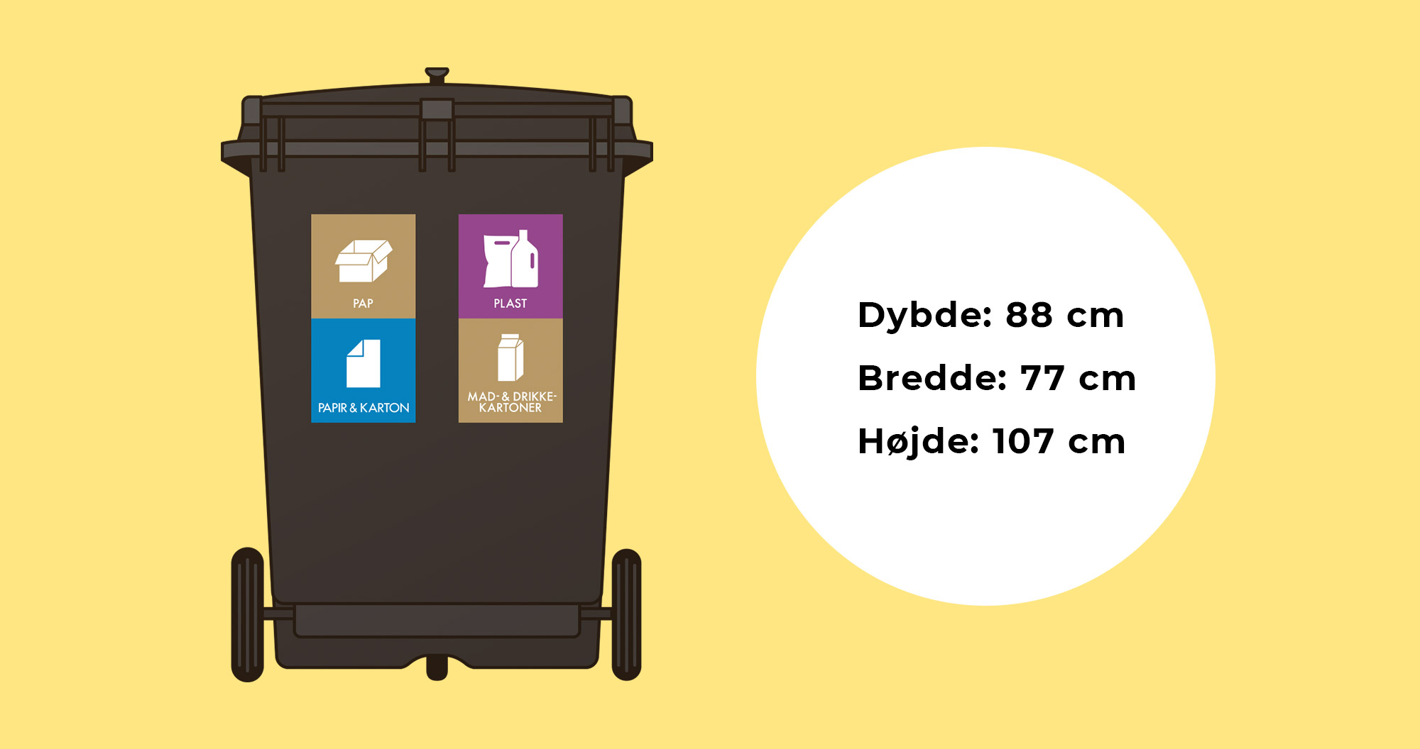 Den nye beholder er væsentligt større end den gamle beholder til papir og karton. Derfor skal du være opmærksom på, at du muligvis har behov for mere plads til dine affaldsbeholdere.