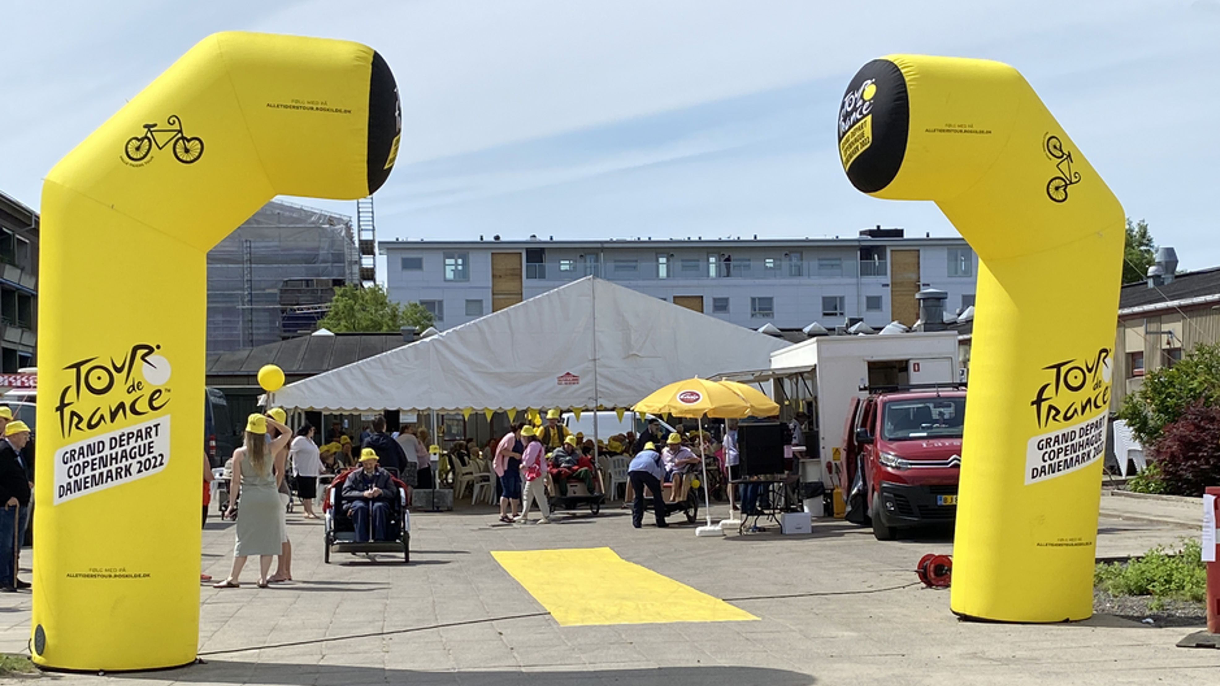 Der er langt til Paris. Især på cykel. Men for Seniorhøjskolens og plejecentrenes brugere i Roskilde Kommune var det præcis målet i det projekt, der går under navnet ”Tour de Paris 2022”. Her skulle man over otte dage fra 9. til 17. juni forsøge at cykle de 1.200 kilometer inden den kæmpe gule afslutningsfest i Æblehaven, der var arrangeret i samarbejde med Beboercafeen og den lokale kiosk.