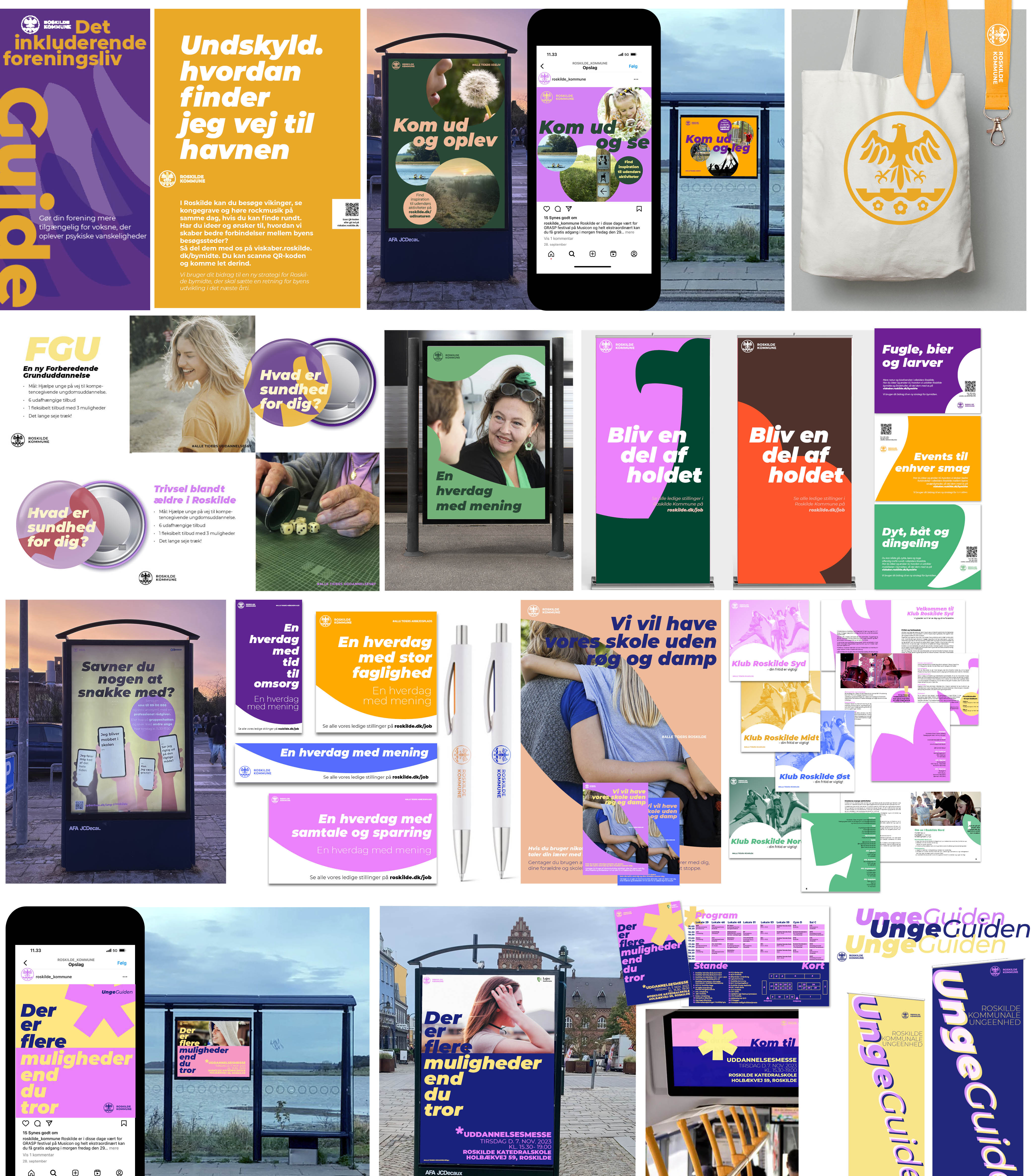 Roskilde Kommunes designguide indeholder logo, skrifttyper og farver, som skal bruges, når man kommunikerer på vegne af Roskilde Kommune.