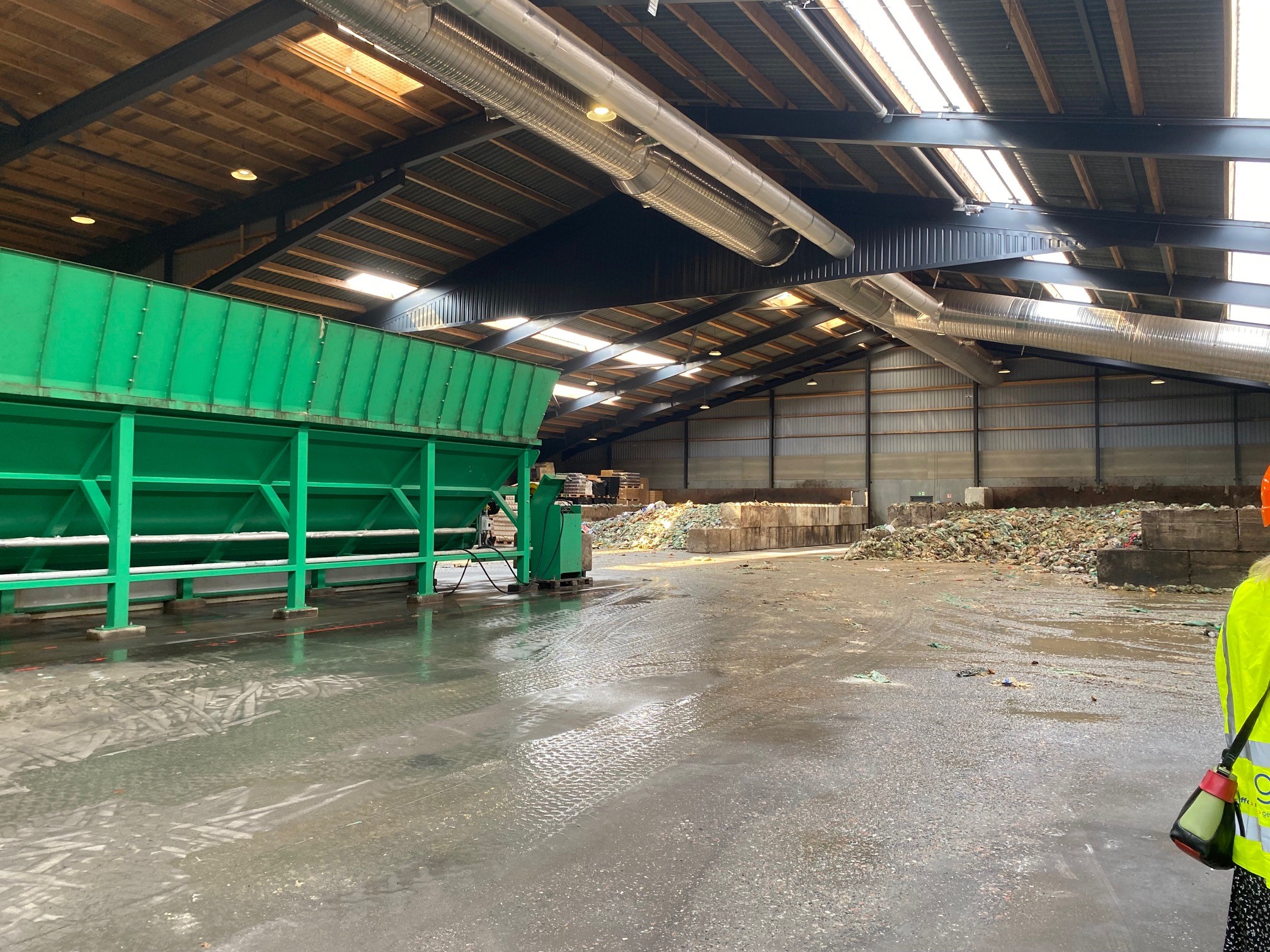 I aflæsserbygningen fordeler kranen madaffaldet i de forskellige siloer. I siloen til venstre lastes alt madaffaldet, der skal til Gemidan.