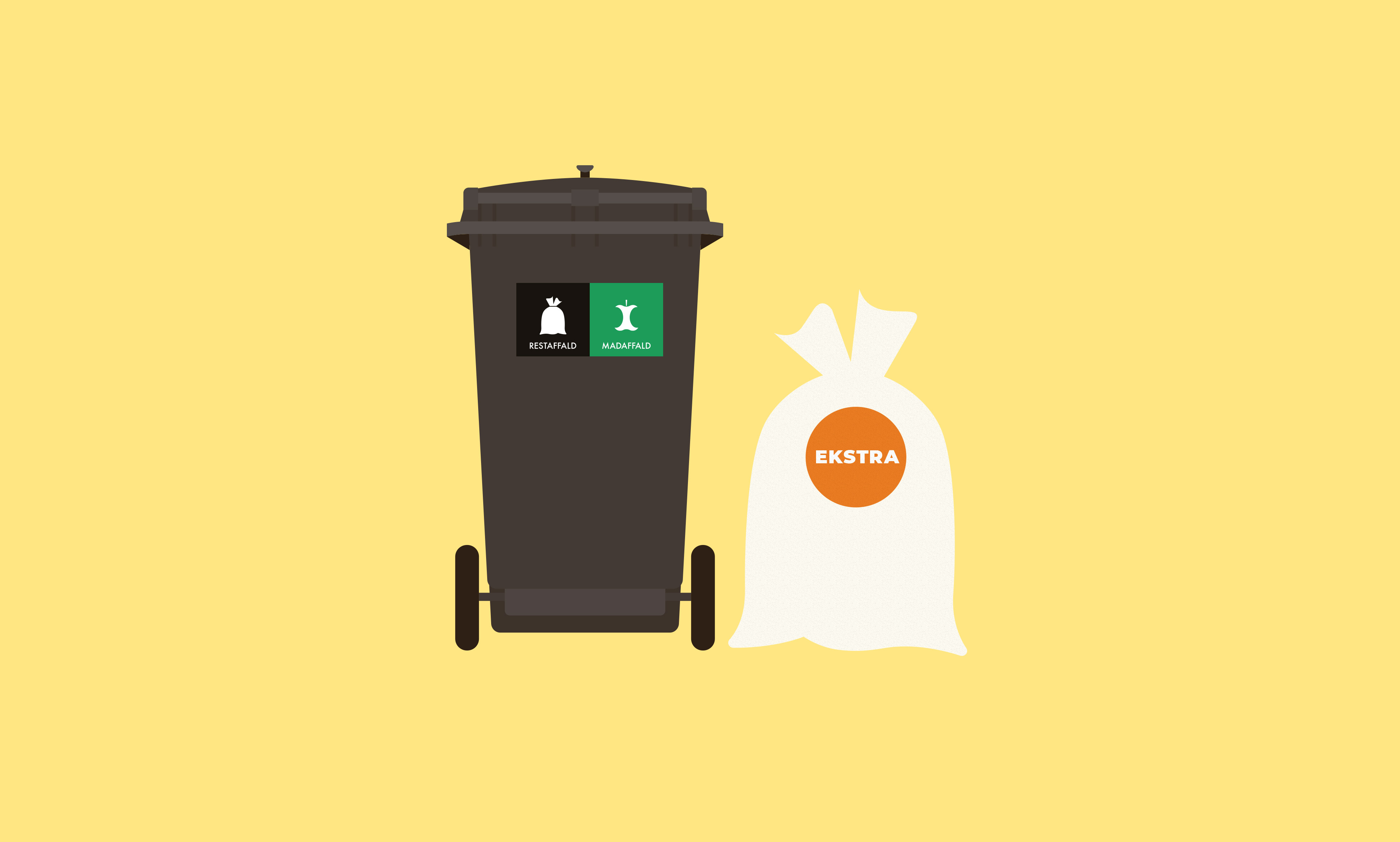 Har du nogle gange mere restaffald, end der kan være i din sæk eller beholder, kan du købe et affaldsmærkat med teksten "Ekstra sæk til restaffald".