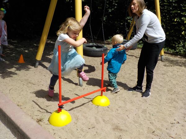 Mens der er storgruppe er de mindre børn samlet, hér arbejdes med tryghed, at lære at begå sig i fællesskabet og selvhjulpenhed.