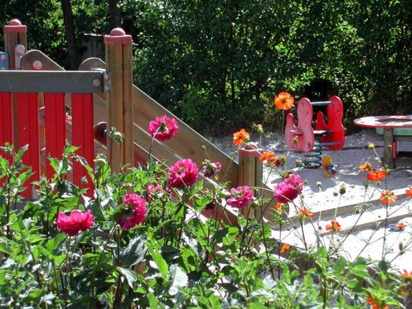 Hyldebo har en stor dejlig legeplads med en lille skov og bålhytte, hvor der er rig mulighed for at blive udfordret motorisk.