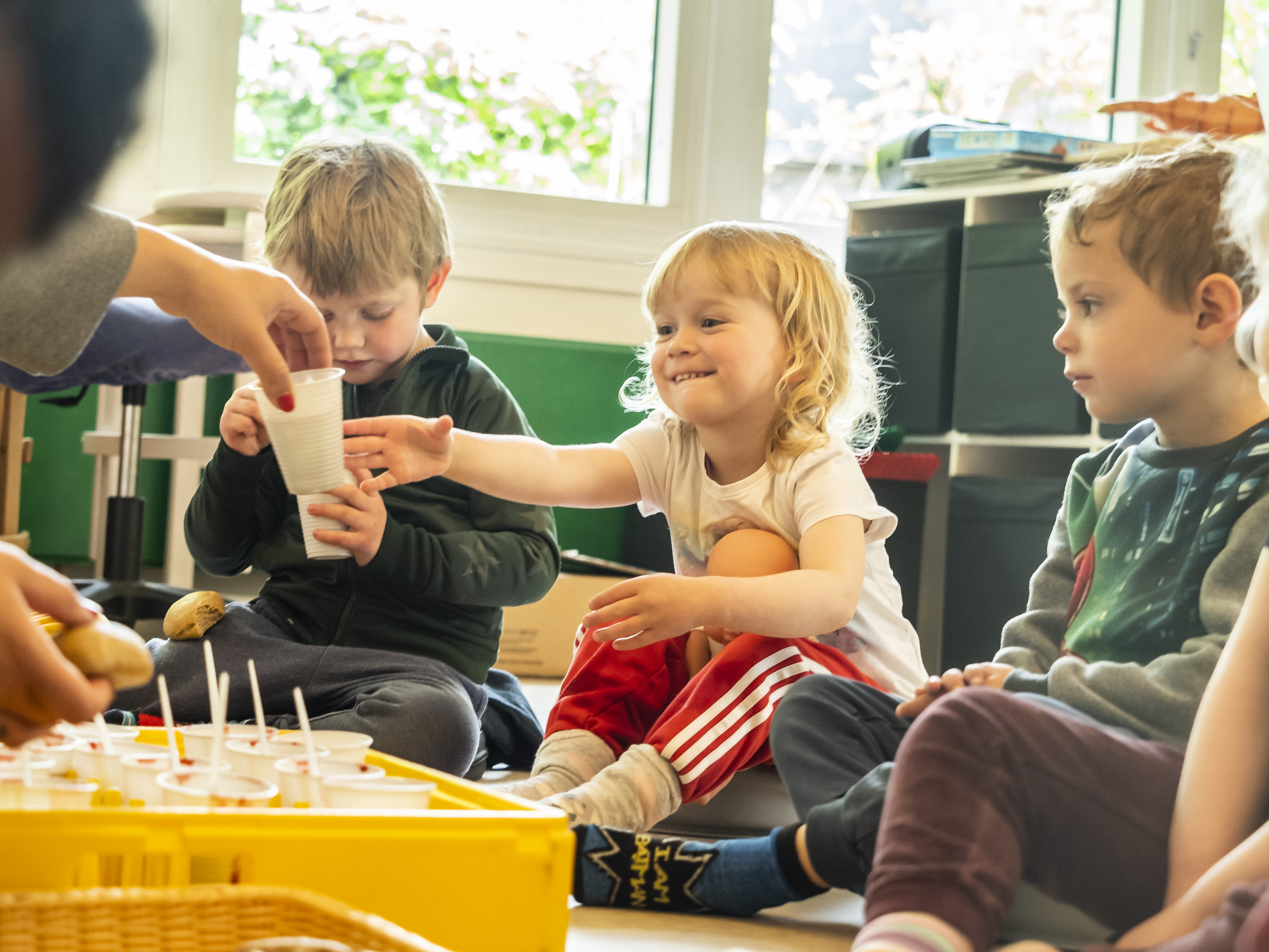 Hos os skal børnene opleve, at de bliver set, hørt, forstået og mødt af de voksne omkring dem. Vi tror på at det giver dem mod på at sig i kast med at udforske sig selv og verden. Vejen dertil går gennem omsorg.