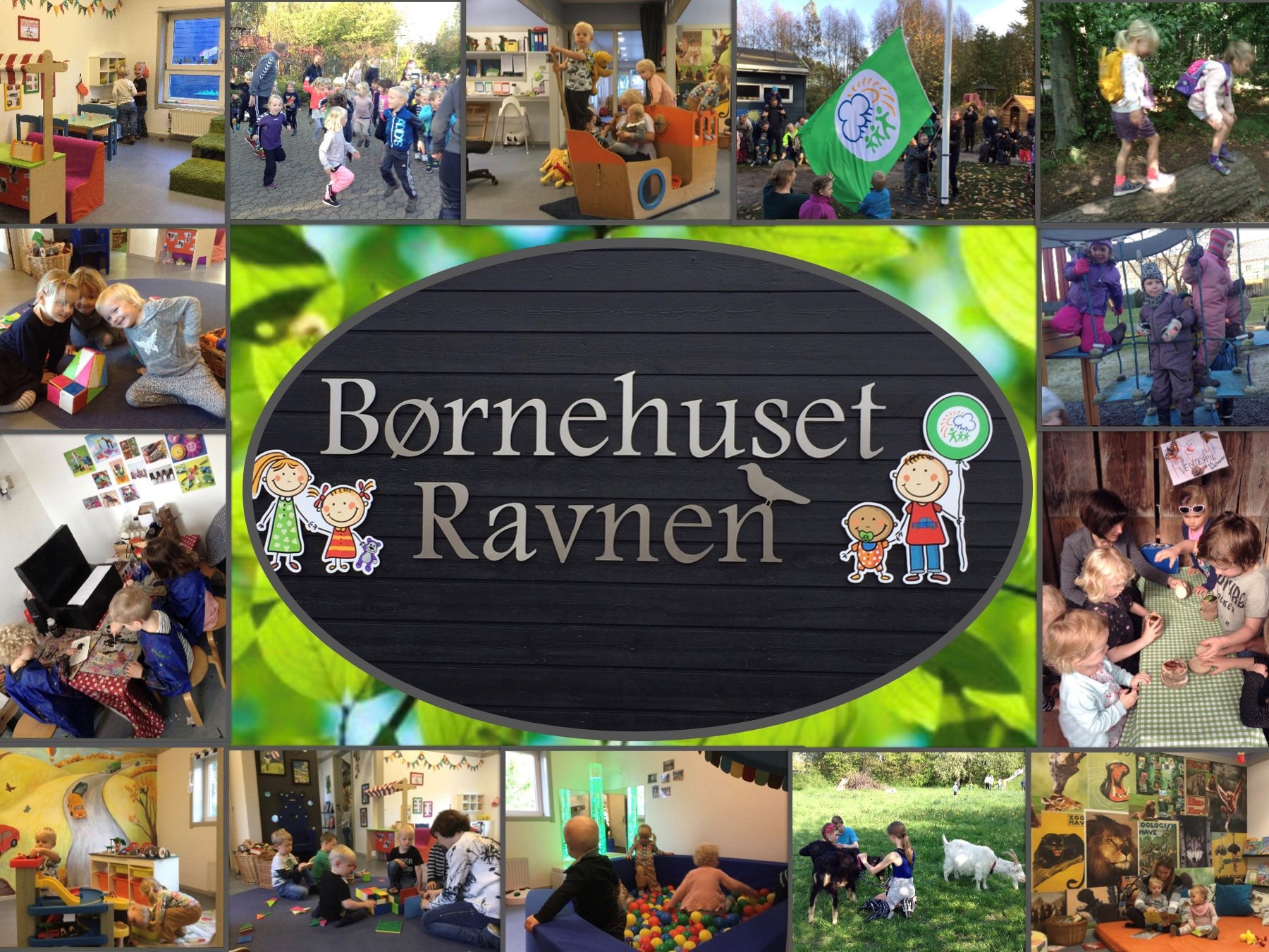 Børnehuset Ravnen har Friluftsrådets Grønne Flag, og vi arbejder med naturen som et ekstra pædagogisk rum fuld af muligheder for at integrere samtlige læreplanstemaer. Vi får sved på panden, når vi går på de vildsomme veje og føler glæde og stolthed ved at opleve, at vi kan noget mere end sidste gang. Ravnebørnene er aktive deltagere i forløb, som f.eks. ”Fra larve til sommerfugl”, ”Sprog, kunst og sang”, ”Fri for mobberi og gode venner” og ”Økologisk bålmad for små vikinger”. Alle børn kommer på tur mindst en gang om ugen i forskellige miljøer og udfordres i tæt samarbejde med jer forældre efter deres alder og nærmeste zone for udvikling.