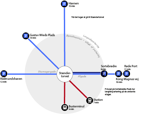 Se, hvor du finder gratis langtidsparkering, på dette kort.
